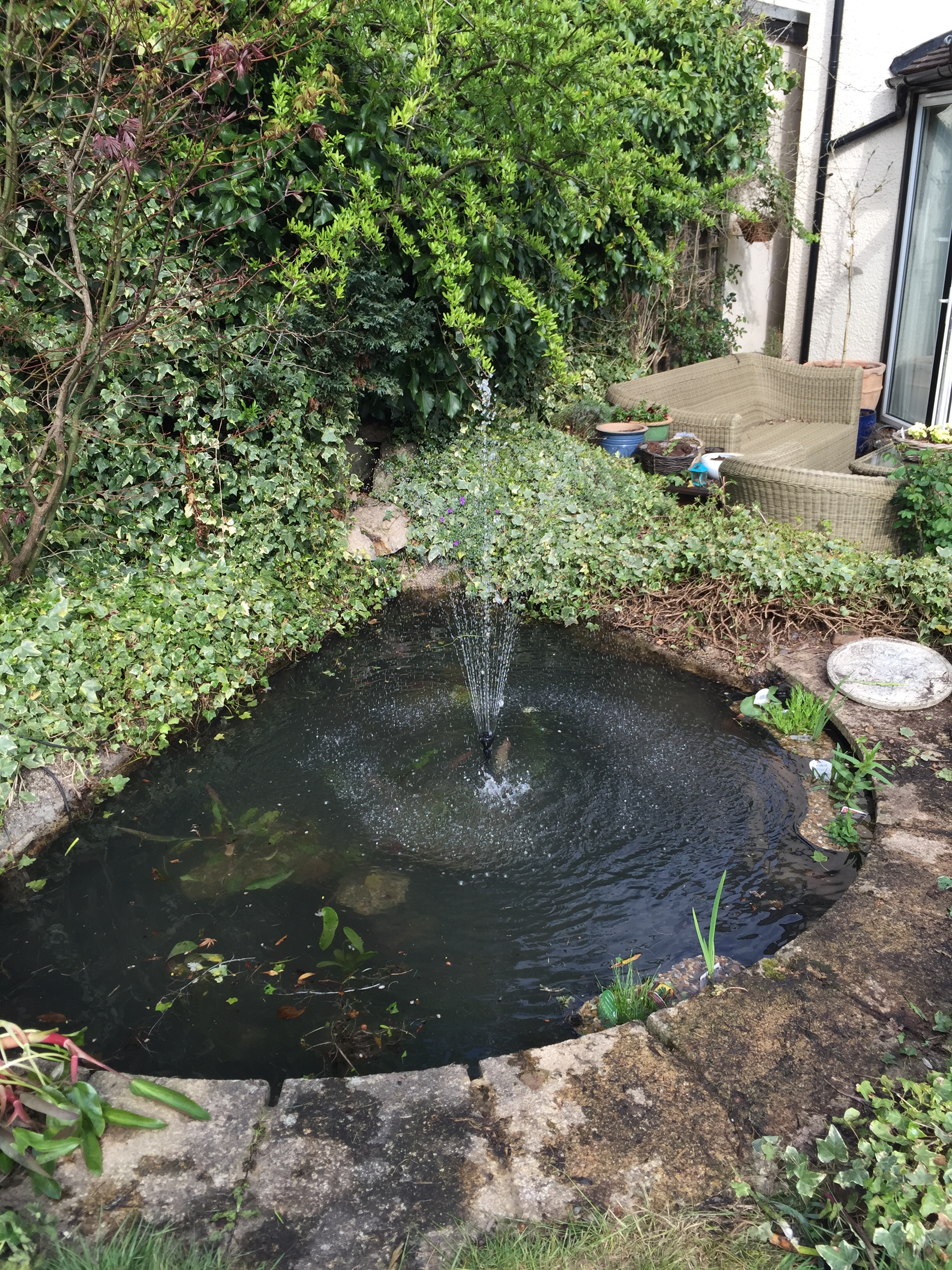 The Majority of the plants were composted however some were re-potted, new additions of deep water plants and water lilies were also added. A new pump was added to provide a nice fountain and supply water to a small waterfall. The pond was re-filled using some of the old pond water and the wildlife and fish slowly acclimated to their new pond.