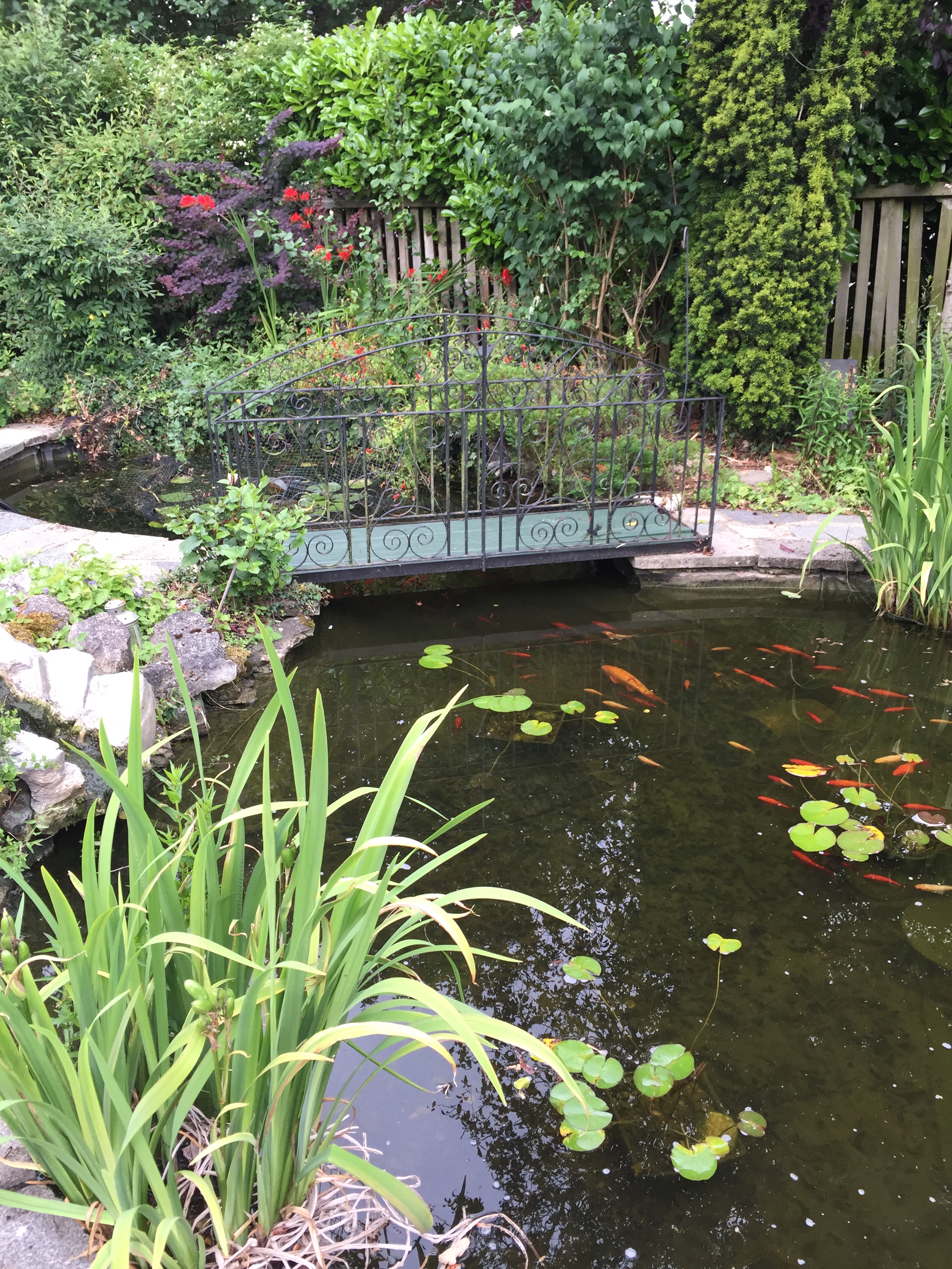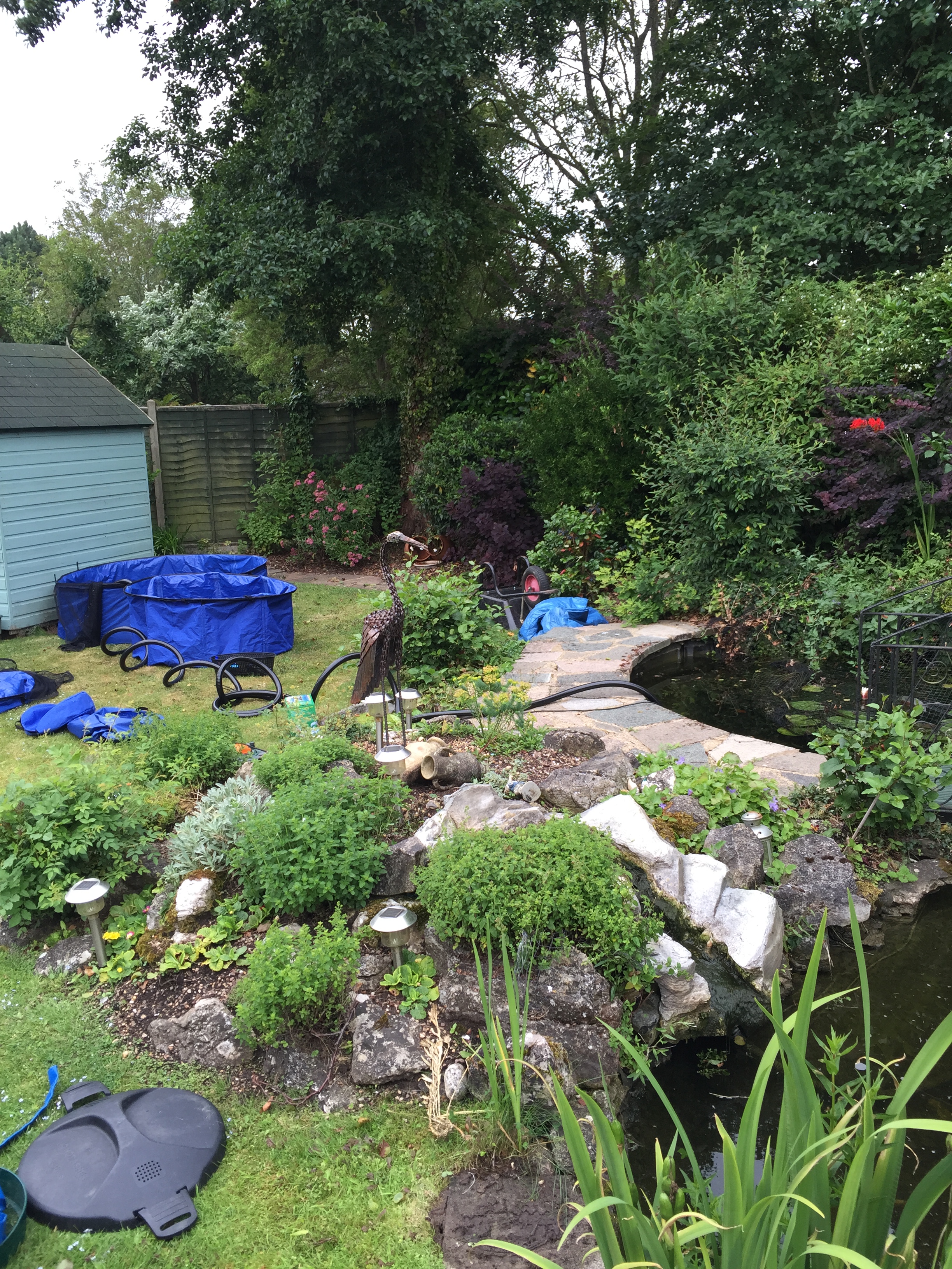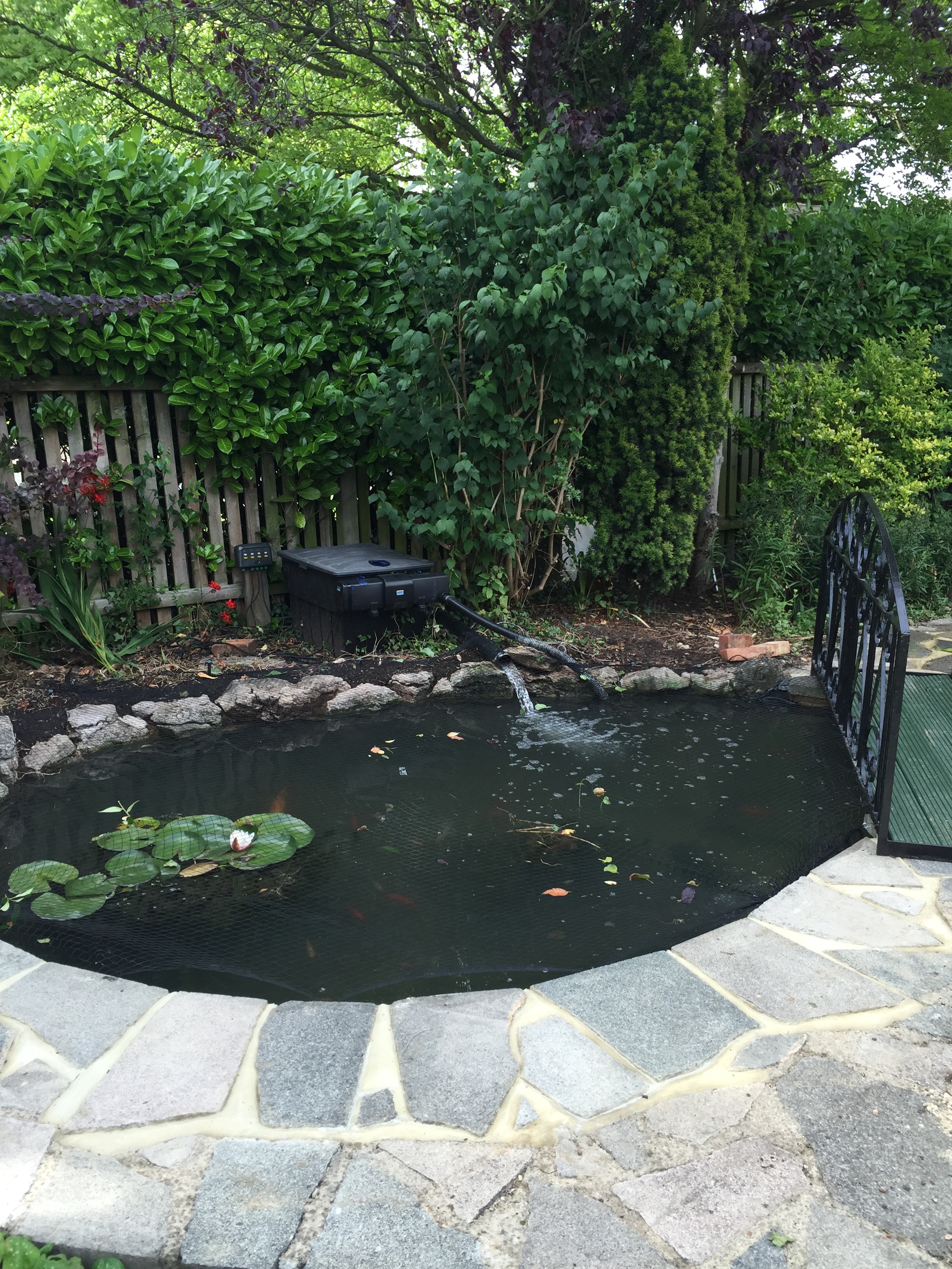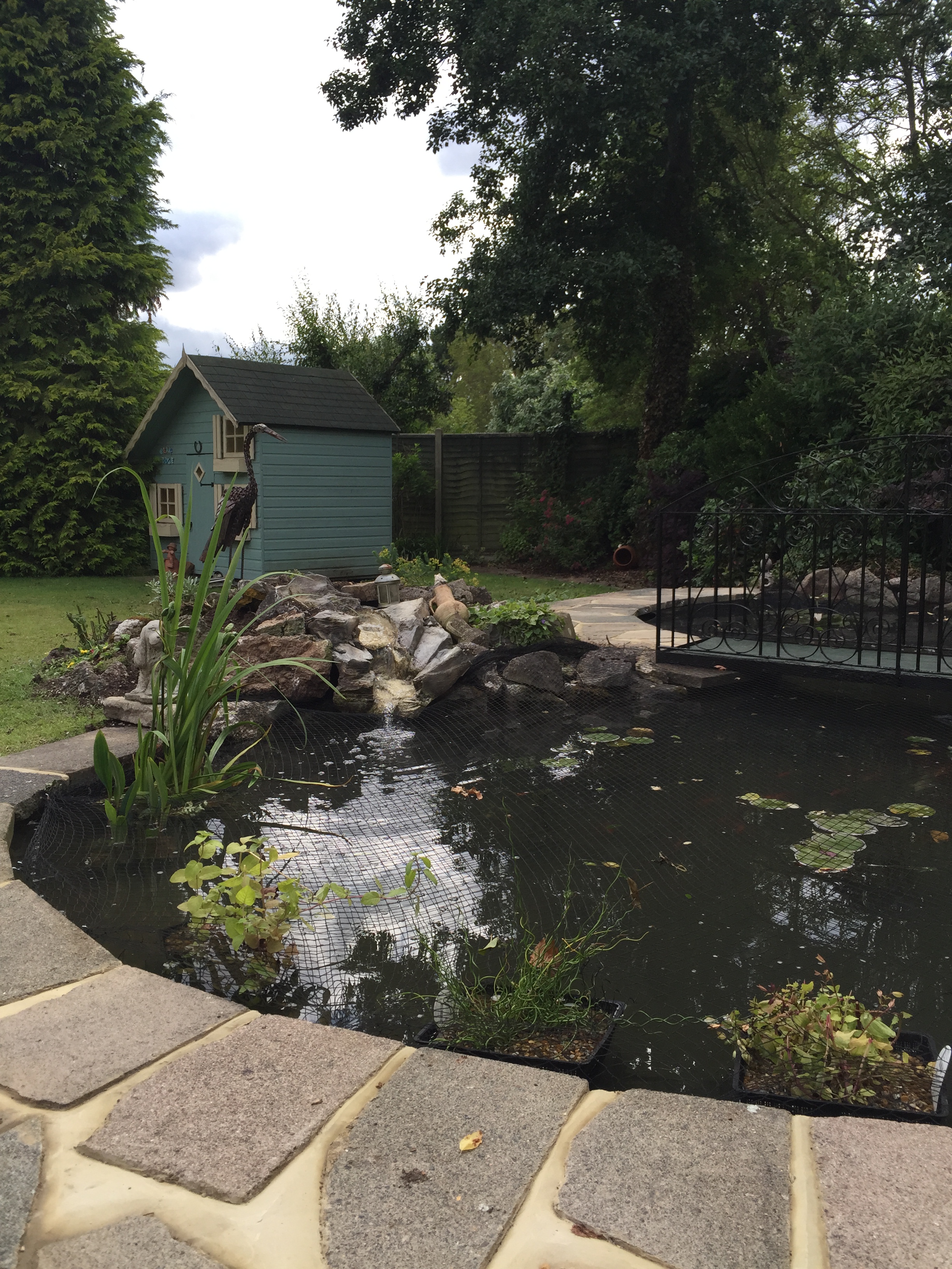 The addition of fish and plants along with a net neatly secured to the ponds edge were the finishing touches to complete this impressive pond.