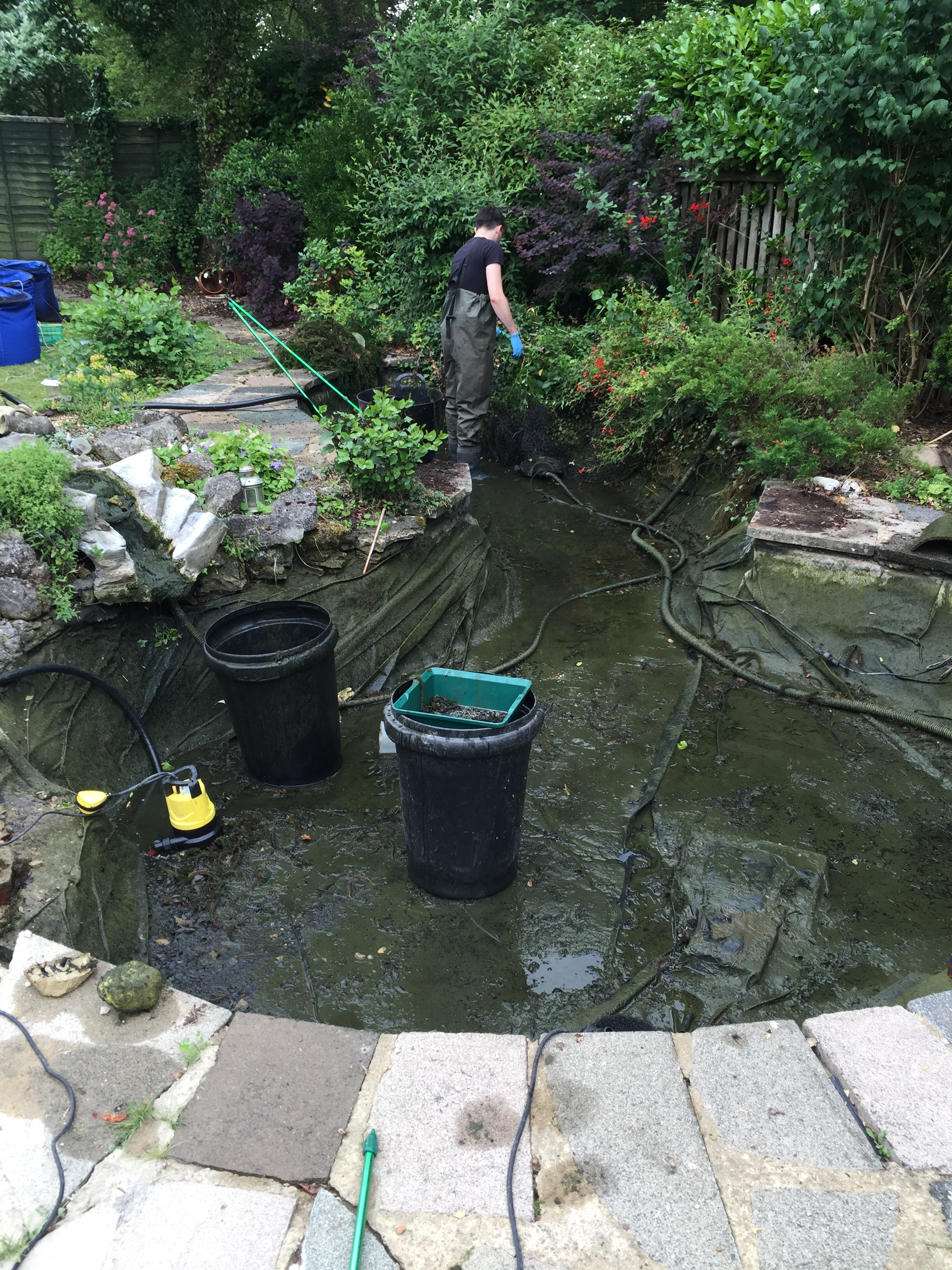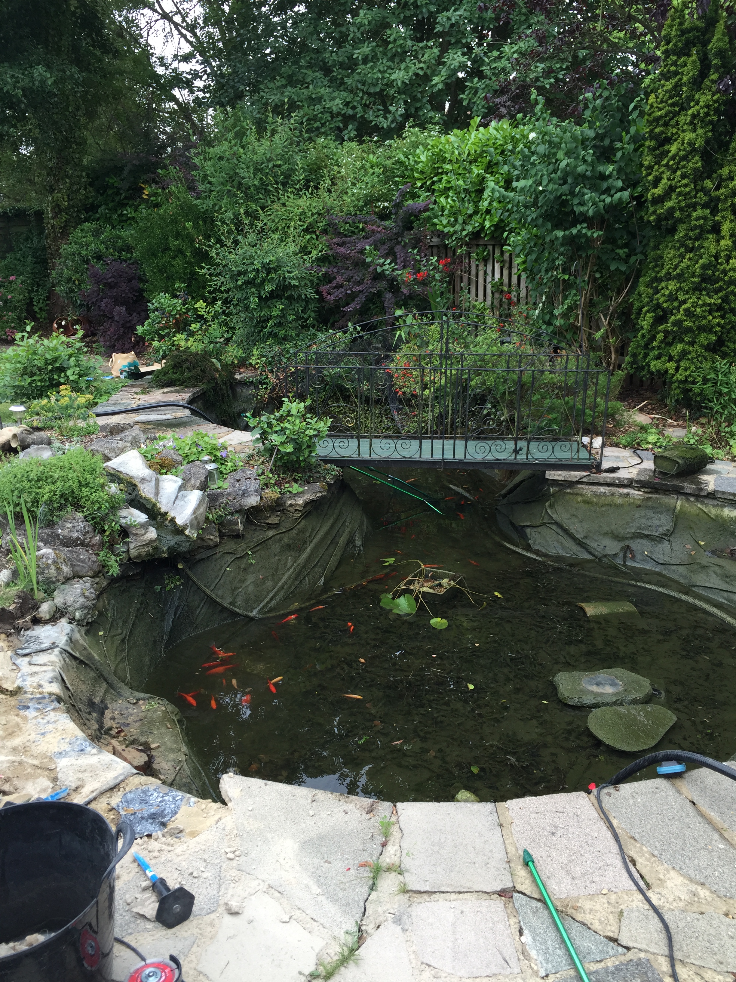 This large fish pond in Harpenden Hertfordshire needed to be relined due to a leaky liner. Although a patch had been tried many years ago it was realised that a complete new liner would be needed to get the pond back to its former glory.