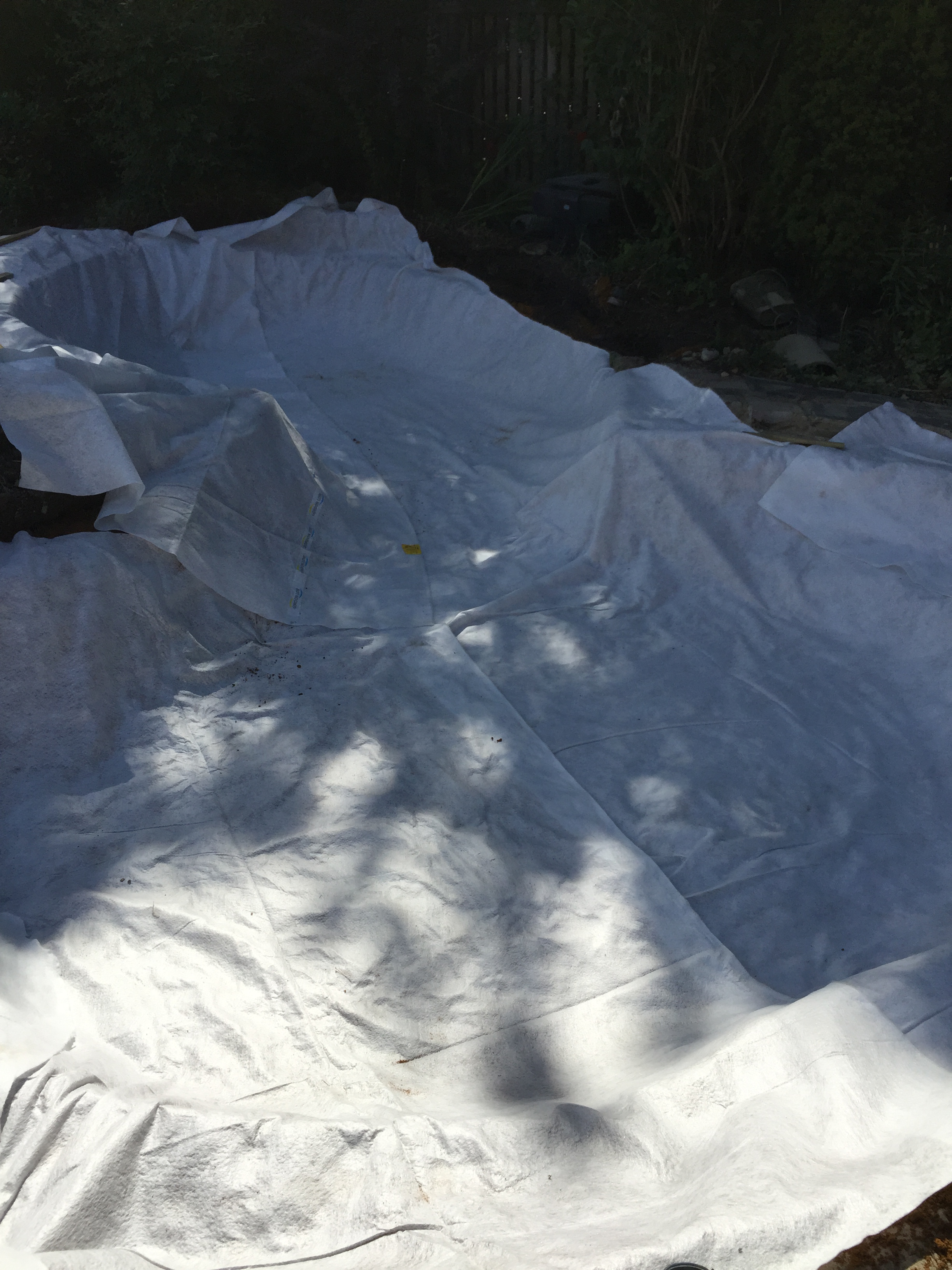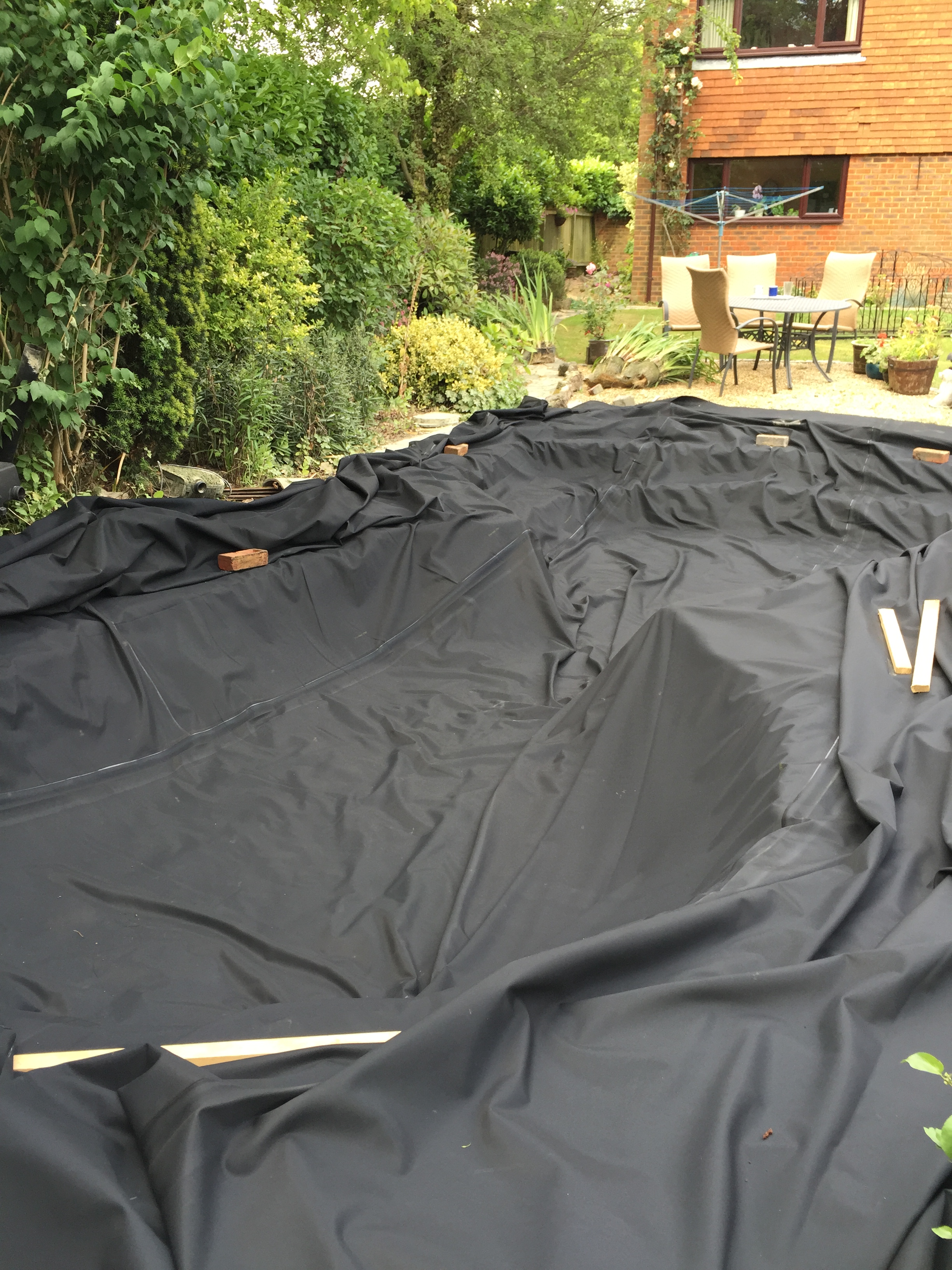 The pond was given a fresh layer of sand and a new large shelf running across the front of the pond to allow for the addition of marginal plants. A high quality underlay was laid before the Gordon Low Greenseal liner was put in place. The pond was gradually filled and folds were kept to a minimum.