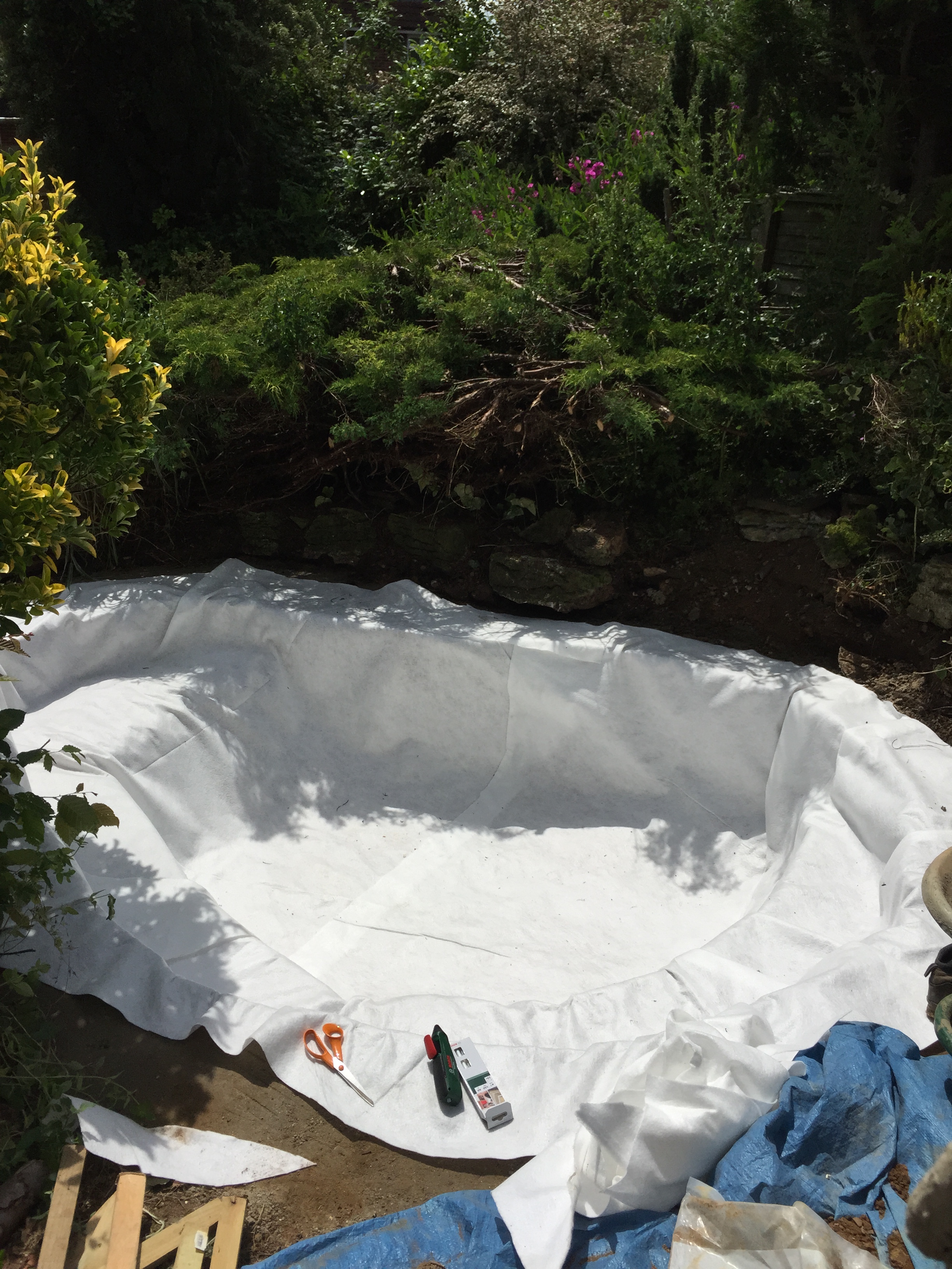 This wildlife pond in St.Albans needed to be completely re-lined to hold water again. The old liner looked like an old paddling pool liner! The pond was emptied which was mostly sludge with very little water and the family of newts housed in a temporary pond. A new level was set with a concrete topper for the edging stones and a new shelf was created to allow for a better planting area. The new underlay fabric and pond liner was next with the old Yorkstone being re-used as the edging. Pointing of the slabs along with planting additions completed the pond a fully refurbished environment ready for aquatic life once again.